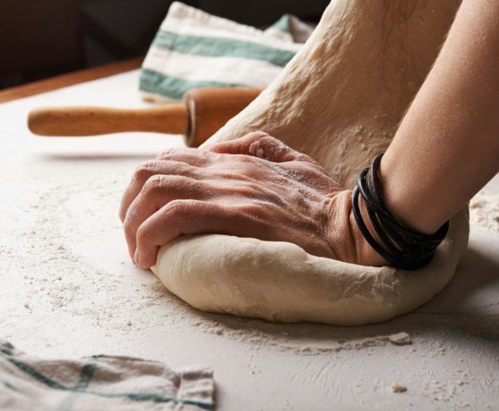 Knådningen är avgörande. Den hjälper glutenet att utvecklas och gör degen elastisk. Knåda i cirka tio minuter för hand eller fem minuter i maskin. Degen ska kunna dras ut i tunna lager utan att spricka direkt – det kallas ibland för “fönstertestet”.